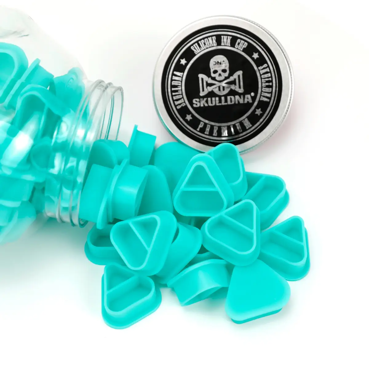 Силіконові ковпачки AVA SKULLDNA Triangle Silicone Ink Cup 2in1 Turquise Color - 80шт.