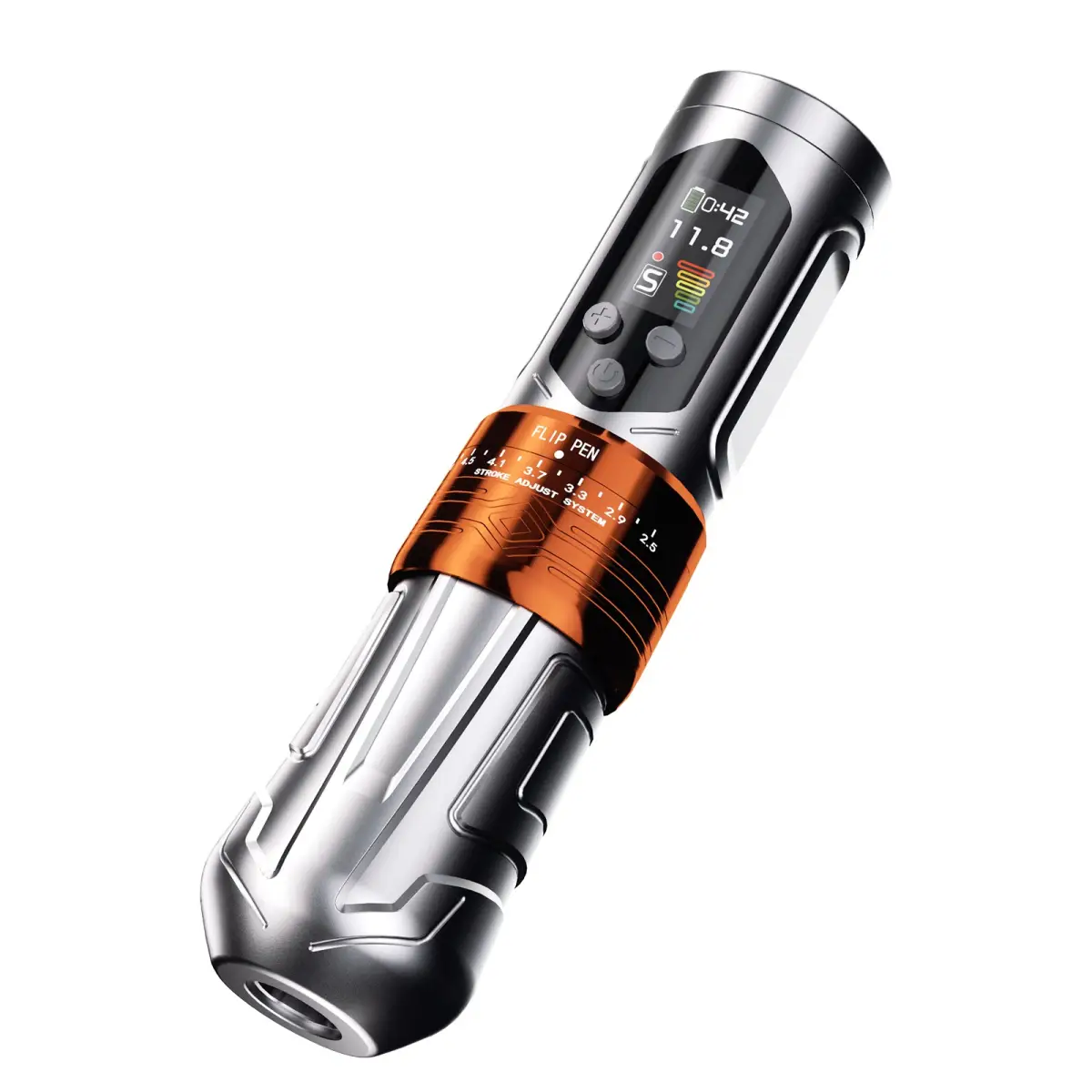 BRONC X2 NEO – преміальний бездротовий тату-пен зі швейцарським мотором 7.1 mNM, регульованим ходом 2.5–5.0 мм, IPS дисплеєм і батареєю на 7–9 годин. Потужність, точність і комфорт для професійних майстрів.